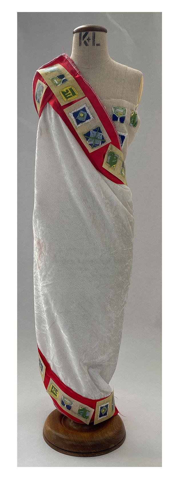 I have exhibited a short illustration-only story based on my research of traditions and culture from Korea. My theme was Korean culture. Each page depicts Chae-Won (채원) experiencing her life, including some important traditions of that time. I have recycled used paper and sawdust for each page to be representative of the processes in creating hanji (paper) using sawdust to represent the raw materials in the paper. I have used watercolour to add colour as they can more accurately emulate the colours used in traditional artworks. I used fineliner to break up the images and make the story easier to follow. The red cotton binding is representative of traditional Korean book binding (seonjang). In each part of this work I have tried to link everything carefully into traditional Korean culture through research.