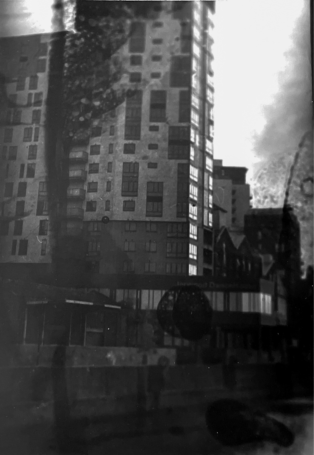 I have created a series of pictures including 3 films and 3 digital photographs. They include historical buildings of Ipswich (St Lawrence Church, The Ancient House, St Peter’s). They are black and white photographs, representing the old times of Ipswich. For context, Covid had a massive impact on the amount of customers in Ipswich town center as well as several businesses. With my photograph, I am remembering the beauty of Ipswich to hopefully draw people back in and celebrate the reopening of our town as well as appreciating small businesses who suffered during the pandemic. The film photographs are experimentation outcomes, where I tried to burn and bleach the film, hopefully getting unique and interesting results. As of the digital photographs, I used photoshop to create double exposures and experiment with other features. Because they are all fine art photographs, I referred to black and white photography, because it gives them a classical feeling and captures a timeless moment. We all see the world in color but when it is removed, we tend to pause and look more closely.